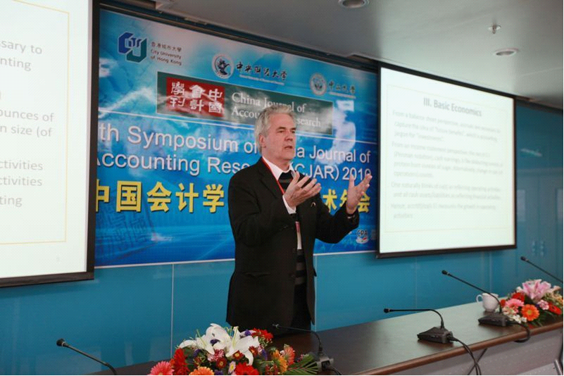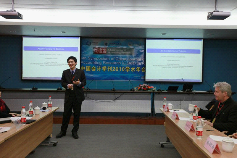在随后一天半的学术年会中,CJAR主办方先后邀请了国际知名的两位学者进行主题演讲:其中12月17日下午的主讲人是来自纽约大学的James Ohlson教授,他的发言主题是“会计应计的基础理念与度量”;12月18日上午的主讲人是来自卡耐基梅隆大学的Pierre Jinghong Liang(梁景宏)教授,他的发言主题是“理论研究的魅力”。