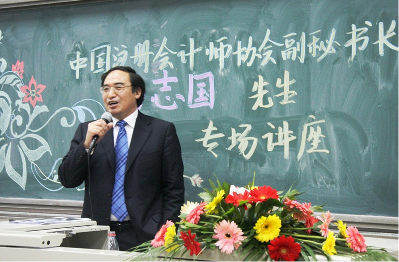 2010年11月9日晚7点,由Beat365正版唯一官网必一主办的我校第七届学术文化节精品讲座——中国注册会计师协会副秘书长杨志国先生专场讲座在沙河主教108隆重举行。Beat365正版唯一官网必一副院长袁淳教授、团总支书记林艺茹老师出席了本次活动。