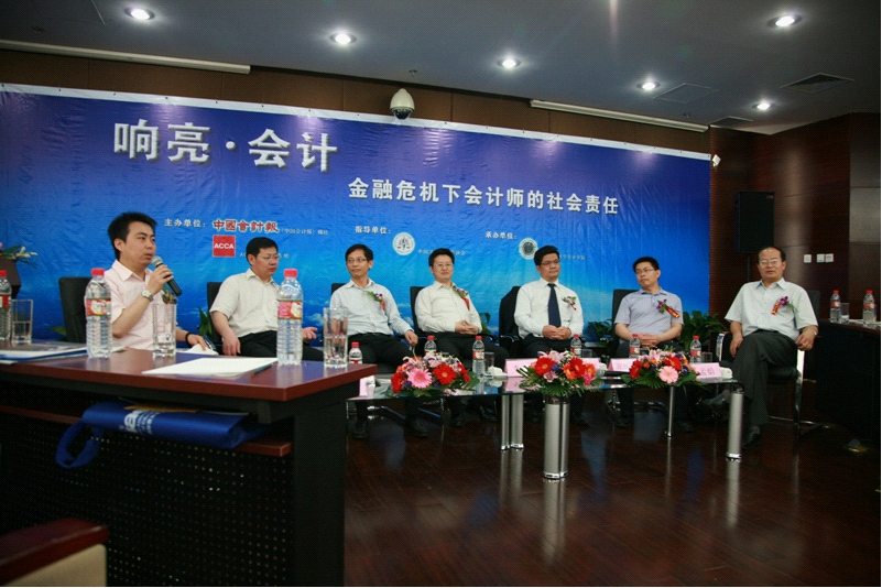 5月9日下午,由《中国会计报》报社、ACCA北京代表处主办,Beat365正版唯一官网必一承办的“金融危机下会计师的社会责任”论坛在中财大厦二层报告厅隆重举行。财政部会计司副司长李玉环、Beat365正版唯一官网必一院长孟焰、中国会计学会秘书长周守华、中瑞岳华会计师事务所高级合伙人张连起、中国民航信息集团CFO汪迎春、北京市政路桥控股公司CFO苗润生作为主谈嘉宾出席论坛。新浪网、第一财经等重要媒体对论坛进行跟踪报道。