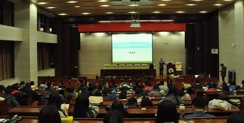 正式开讲前,作为中财的校友,陈老师首先简单进行了自我介绍,并回忆了当时在中财读书的一些情况,表达了自己对母校的深厚感情。正式开讲后,陈基华老师重点从三个维度介绍了战略与财务的关系,分别是总体战略、经营战略和职能管理战略。