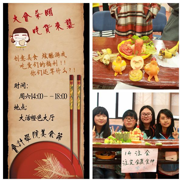 本次美食节活动取得了良好的活动效果,通过丰富多彩、形式多样的游戏,同学们在轻松欢快的氛围中了解了更多美食知识;通过使用牙签和蔬菜瓜果制作创意作品,大家充分发挥想象力,运用奇妙的组合,让日常生活中不起眼的食材成为精美的艺术品。最重要的是,同学们通过默契的配合及团结的合作,增进了友谊,加深了对彼此的了解,让大家对以后完成任务时所需要的团结合作精神有了更进一步的深刻认识,对同学们以后的学习生活有很大的帮助。