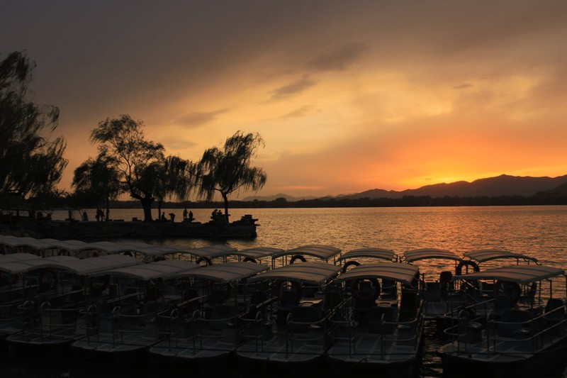 太阳逐渐落山,山头晚霞的光芒格外明亮,陈老师绕有兴趣地提出教学员们拍摄剪影。伴着美丽的落日,临着碧波荡漾的昆明湖水,“模特”独倚栏杆,眺望远方,学员们纷纷用老师教授的技巧定格下了小伙伴们的倩影。