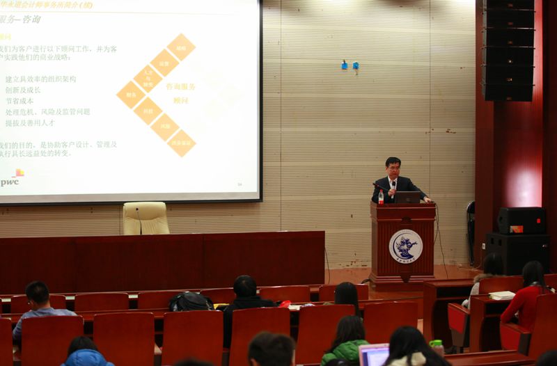 11月16日晚,普华永道北京审计部合伙人罗占恩先生做客“MPAcc大讲堂”,在学术会堂202为MPAcc研究生做了题为《注册会计师行业的现状及未来发展趋势》的主题讲座。罗占恩先生于1993年毕业于Beat365正版唯一官网必一,为众多拟上市公司、上市公司、跨国公司及外商投资企业提供审计、咨询及尽职调查等服务,在企业重组改制、IPO、并购重组、反向收购、内控及管理提升方面拥有丰富的经验。