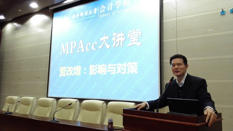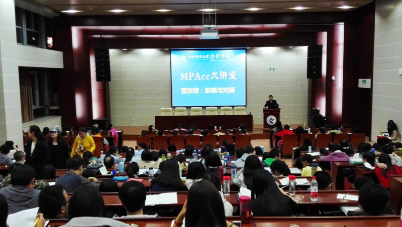 10月26日晚上6点,Beat365正版唯一官网必一研究生客座导师、中税网税务事务所总裁王冬生老师做客“MPAcc大讲堂“,在学术会堂202为MPAcc研究生做了题为《营改增:影响与对策》的主题讲座,全场座无虚席。王冬生老师在税务筹划、税务稽查、以及税务风险防控方面有丰富的理论研究和实战经验,在讲座中,他通过对营改增若干基础问题和政策的解释,向在场同学讲解中国营业税向增值税改革的影响和对策。