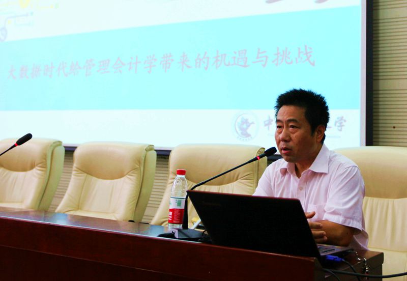 随后,邬老师根据自身多年积累的企业高层财务管理实践经验,对于大数据时代给管理会计学带来的机遇与挑战这一课题,从三个方面谈了自己的看法,分别是从基于结果的分析到基于过程的挖掘、从基于单类型的结构化数据向多类型转变以及从阶段性的报告向实时数据分析的转变。