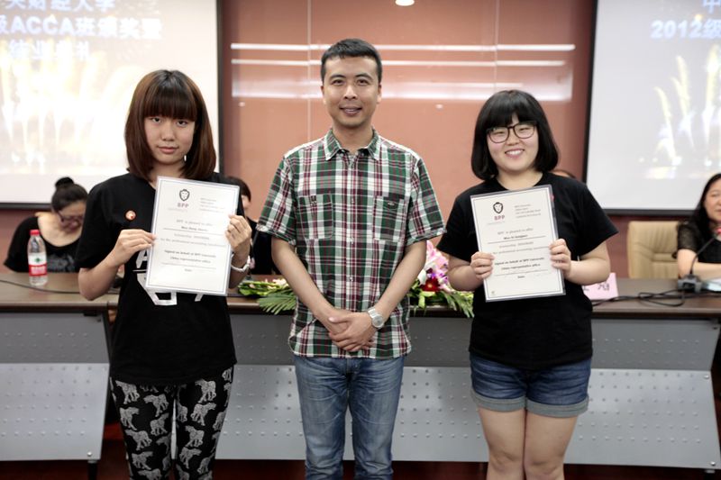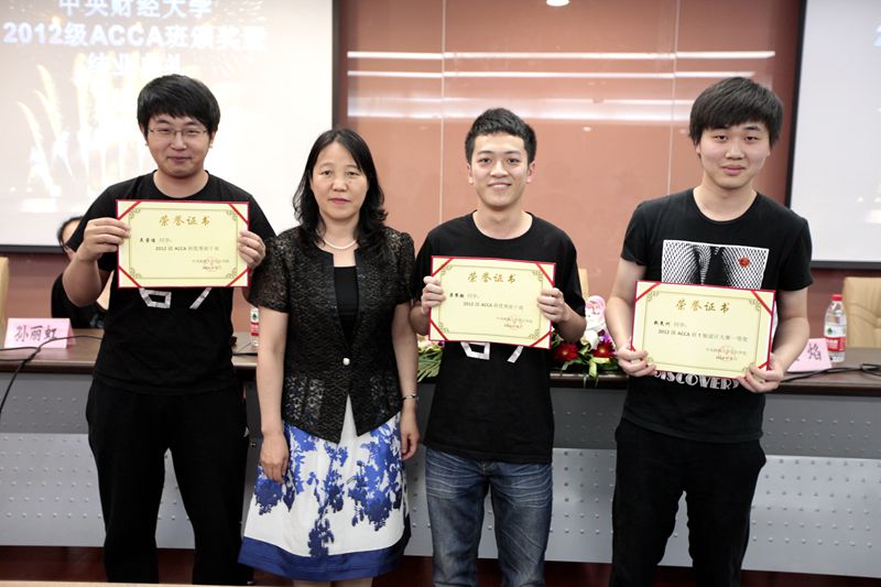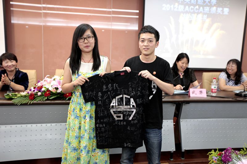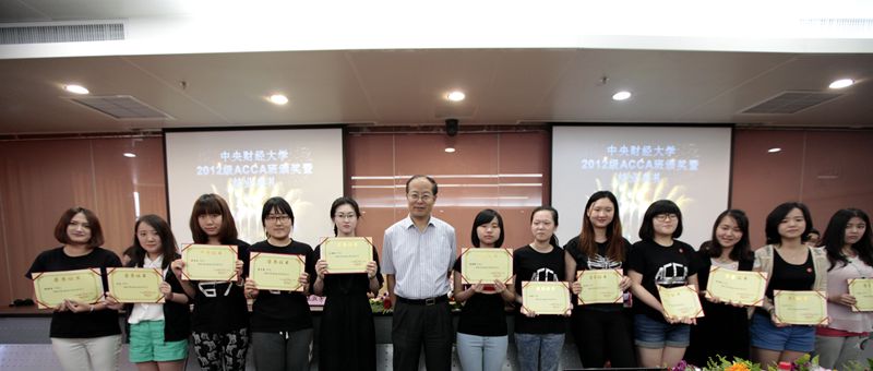 随后,孟焰院长为2012级ACCA班优秀学生颁发奖状,武羿副院长为2012级ACCA班优秀学生干部、班服创意大赛优胜者颁奖。