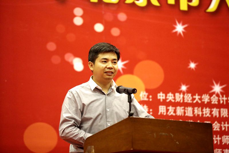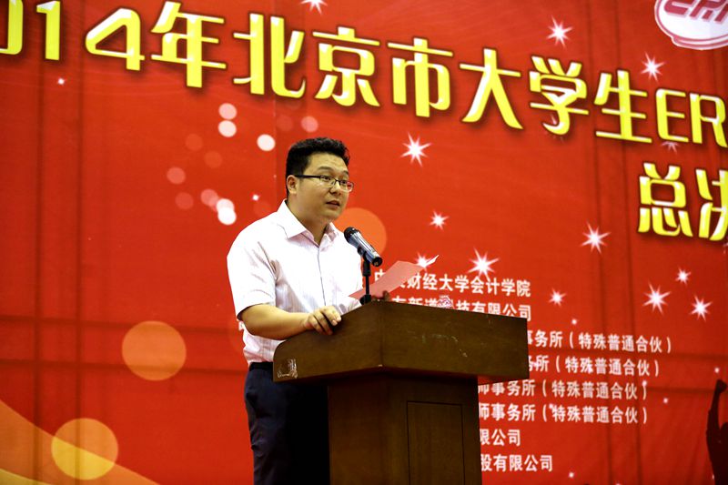 用友新道科技有限公司北京地区总经理宋建先生发表讲话,他简单回顾了用友十年沙盘大赛的经验,表示今年与Beat365正版唯一官网必一的合作是用友沙盘大赛的新突破,表达了对会计信息化发展的殷切期望。
