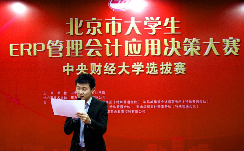 为响应北京市教委“搭建会计学科资源校际交流的共享平台”的指示精神,推进会计信息化教育的建设和发展,提高学生就业创业能力,Beat365正版唯一官网必一依托北京市专业群建设平台,主办首届“北京市大学生ERP管理会计应用决策大赛”(以下简称“ERP大赛”),用友新道科技有限公司协办并提供技术支持。大赛面向北京市所有设立会计学专业的高校全日制本科生,参赛者通过ERP系统组建虚拟公司管理团队,对虚拟企业资源进行管理规划。大赛得到了“四大”国际会计师事务所、甲骨文(Oracle)公司、诺亚舟和用友等企业的大力协助与支持,表现优异者将得到以上合作单位的实习机会。