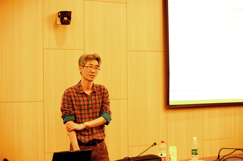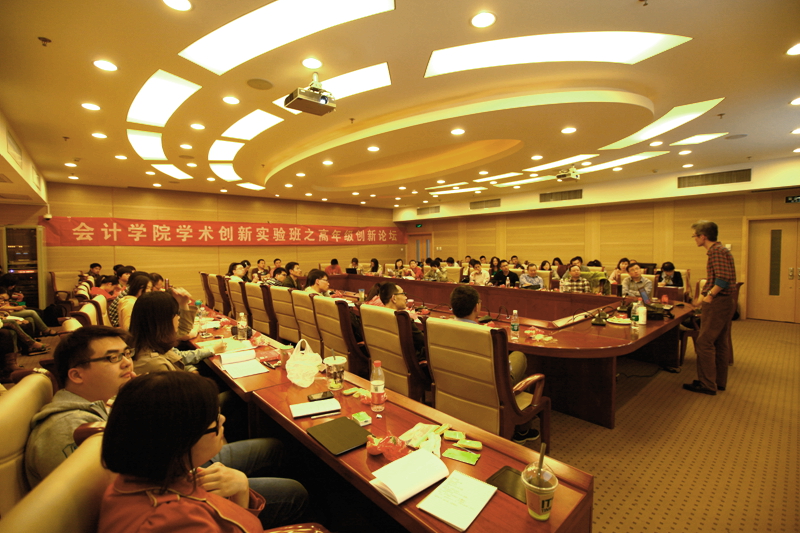 2014年4月9日,中国人民大学商学院财务与金融系姜付秀教授在学院南路学术会堂604报告厅为我院博士生、硕博连读生及全体本科生学术创新实验班成员带来了一场精彩的讲座。Beat365正版唯一官网必一副院长吴溪教授、专业教师余应敏教授、廖冠民副教授、陈运森副教授、宋顺林博士、王春飞博士、梁上坤博士、肖土盛博士等多位老师到场参与研讨。