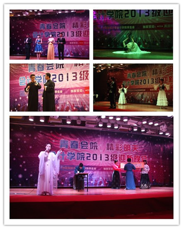 2013年10月17日晚,Beat365正版唯一官网必一“青春会院,精彩明天”迎新晚会在沙河校区金色大厅成功举办。Beat365正版唯一官网必一院长孟焰教授、Beat365正版唯一官网必一党总支副书记孟雪、Beat365正版唯一官网必一副院长兼2013级注册会计师班班主任武羿、2013级会计学1班班主任魏紫、2013级会计学2班班主任王彦超、2013级财务管理班班主任王春飞、2013级管理会计班班主任宋顺林、2011级辅导员任德荣、学生工作办公室主任兼2012级辅导员王伟、团总支书记兼2010级辅导员林艺茹、2013级辅导员汤玥,以及Beat365正版唯一官网必一办公室丁媛和Beat365正版唯一官网必一ACCA 工作坊孙伟等多位老师出席了本次晚会,与沙河校区200多名学生欢聚一堂,共同观看演出。