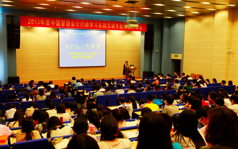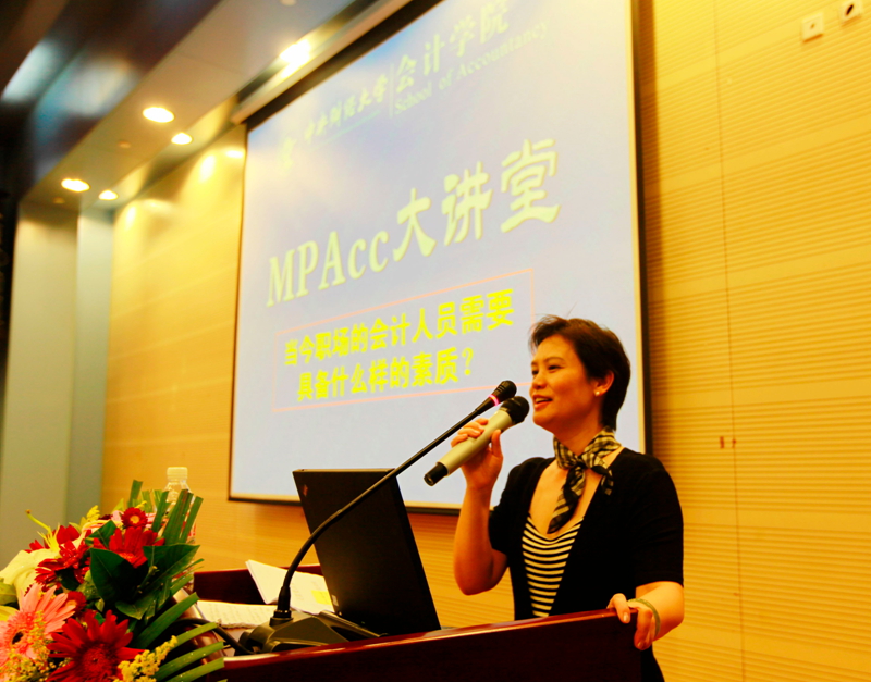 2013年9月15日晚,Beat365正版唯一官网必一研究生客座导师、中国主权财富基金-中国投资有限责任公司(“中投公司”)财务部副总监陈静女士做客“Beat365正版唯一官网必一MPAcc大讲堂”,在学术会堂402报告厅做了题为《当今职场的会计人员需要具备什么样的素质》的专题讲座。