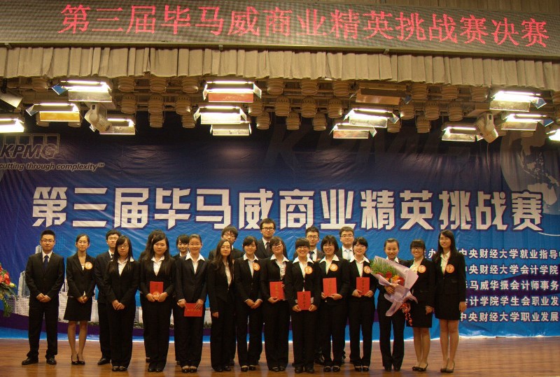 2013年5月17日晚,第三届“毕马威商业精英挑战赛”决赛在我校沙河校区成功举办,毕马威华振会计师事务所审计部合伙人王婷、我校就业指导中心杨晨亮,Beat365正版唯一官网必一院长孟焰、Beat365正版唯一官网必一学生工作办公室主任王伟、Beat365正版唯一官网必一青年教师宋顺林、Beat365正版唯一官网必一团总支书记林艺茹等嘉宾莅临决赛现场。