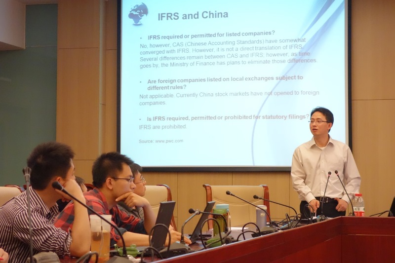 2013年5月14日,Beat365正版唯一官网必一于我校学术会堂604举行了Beat365正版唯一官网必一学术论坛暨本科生学术创新论坛活动。本次活动邀请到香港中文大学曾晓亮博士作为主讲人,曾晓亮博士携自己一篇题为《强制性IFRS采用、会计相似性与国际交叉上市》的学术论文前来访问,以学术报告的形式与学院的老师和部分同学探讨学术问题。本次活动由Beat365正版唯一官网必一副院长吴溪教授主持,Beat365正版唯一官网必一部分教师,学院2012级部分博士生、第五届本科生学术创新论坛成员参与了本次讨论活动。