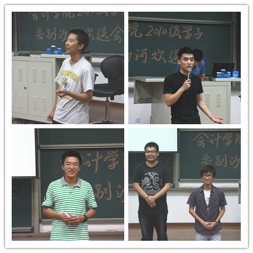 2013年6月23日晚,Beat365正版唯一官网必一团总支学生会在沙河校区主教学楼111教室,为即将离开沙河校区奔赴学院南路学习的2010级学子们举办了一场隆重而纪念意义深刻的告别沙河欢送会。Beat365正版唯一官网必一党总支副书记孟雪老师、学生工作办公室主任兼2012级辅导员王伟老师、2011级辅导员任德荣老师、团总支书记兼2010级辅导员林艺茹老师、MPAcc办公室主任朱继光老师,2009级优秀学生代表龚鹏,以及2010级全体学员和2011级、2012级的学生代表齐聚一堂,欢送2010级会计学子离开沙河。