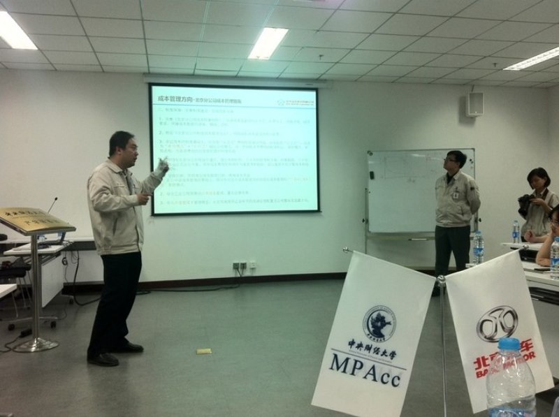 5月13日,我校2012级全日制MPAcc学员赴北汽股份北京分公司考察学习,随行的指导老师和带队老师有Beat365正版唯一官网必一副院长刘俊勇教授、陈刚副教授和王春飞老师。北汽股份北京分公司副总经理李德仁和财务管理科科长鲍宇明亲临现场指导。