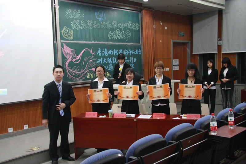 经过激烈的角逐,最终来自2012级管理会计班的“子非鱼队”获得冠军, “子非我队”获得亚军,反方四辩于恩潭获得本场“最佳辩手”称号。