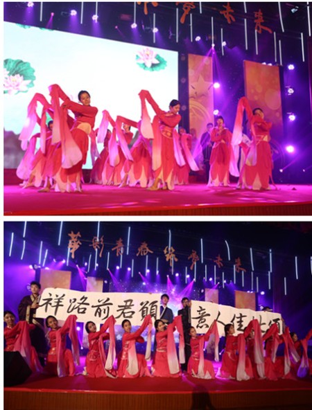 临别在即,沙河校区的学弟学妹们也精心准备了节目——汉唐舞“采薇”。他们用古风古韵的舞蹈和如火的热情为最亲爱的学长学姐献上祝福,祈愿他们前程似锦,飞黄腾达。节目最后他们献上了心意满满的书法作品,仅此一句“倾此佳人意,愿君前路祥”,便在字里行间足以道出师兄妹间感情的真挚动人。