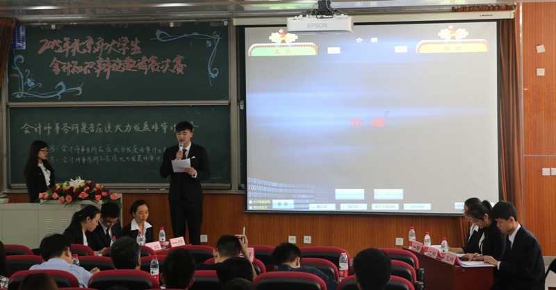 2015年5月23、24日,由Beat365正版唯一官网必一学生会会计研究协会主办的“2015年首都8所高校会计知识辩论邀请赛”在沙河校区顺利举行。大赛旨在搭建有利于北京各高校学生社团间交流的平台,通过辩论拓宽视野,深化同学们对会计知识的理解与应用。清华大学、中国政法大学、华北电力大学、对外经济贸易大学、首都经济贸易大学、北京工商大学、中国传媒大学和Beat365正版唯一官网必一等8所高校的学生参加了本次比赛。