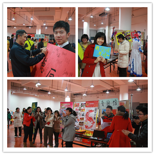 于此同时,各团支部展览馆都准备了与主题思想契合的游戏互动。国际管理会计班团支部借助猜词游戏、丢纸团游戏等形式,开展了十八大报告知识问答;注册会计师班团支部通过“包容你我”、“你划我猜”、“合作双赢”、“同舟共济”系列互动,体现“包容精神”;会计学一班团支部的爱国知识互动竞猜、重温峥嵘岁月以及精彩纷呈的红色舞蹈,让同学们深刻领悟“爱国精神”;会计学二班团支部的“最美风景线”、“头脑风暴”、“纸杆托球”以及财务管理班的沙包游戏、书法表演、诗歌朗诵,等等,寓教于乐,将整个橙色大厅的气氛推向一个又一个高潮,现场气氛异常活跃。