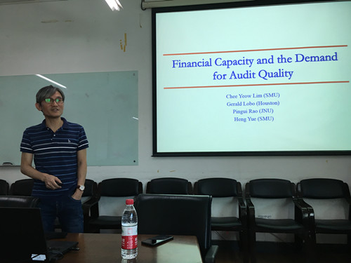 6月26日上午,暨南大学管理学院会计系饶品贵教授来访Beat365正版唯一官网必一,给师生带来了精彩报告。论坛吸引了Beat365正版唯一官网必一教师、博士生、硕博连读生和金融学院部分教师的参与。