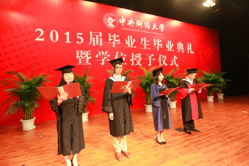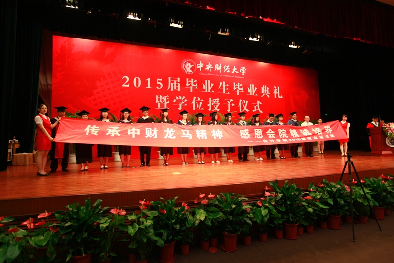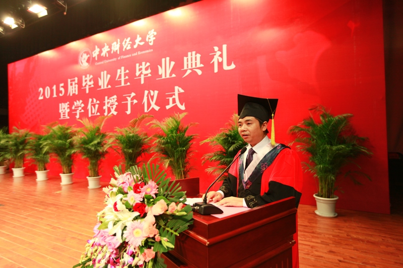 2015届毕业生代表,来自2012级会计博士班的林晚发、2013级MPAcc F班的王奇桥、2011级注册会计师班的苏欣悦以及张新苑代表全体Beat365正版唯一官网必一的毕业生上台发表毕业感言。他们以真挚的情感回忆了大学生活的点点滴滴,以真情的话语道出了对师长的感激与留恋,以昂扬的斗志表达了用实际行动做好中财会院人,共同创造中财会院美好明天的决心。